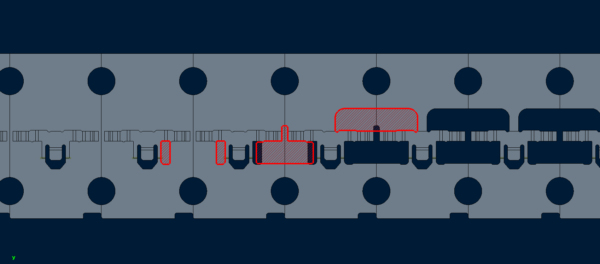 一方、この順送プレス金型のレイアウト設計の高い自由度によっては問題が起こる可能性も高くなります。その1つがマッチングです。
