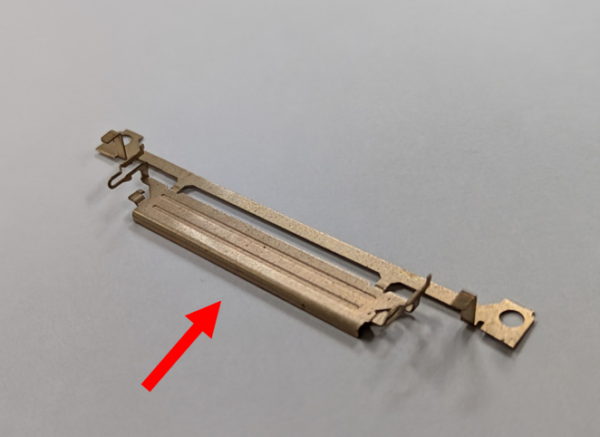 このリン青銅は、非常に硬い材料として知られており、クラックが起きやすい点がお客様としても課題認識されていました。しかし当社では、曲げ工程に工夫を凝らすことで、クラックの発生を防ぐことに成功いたしました。