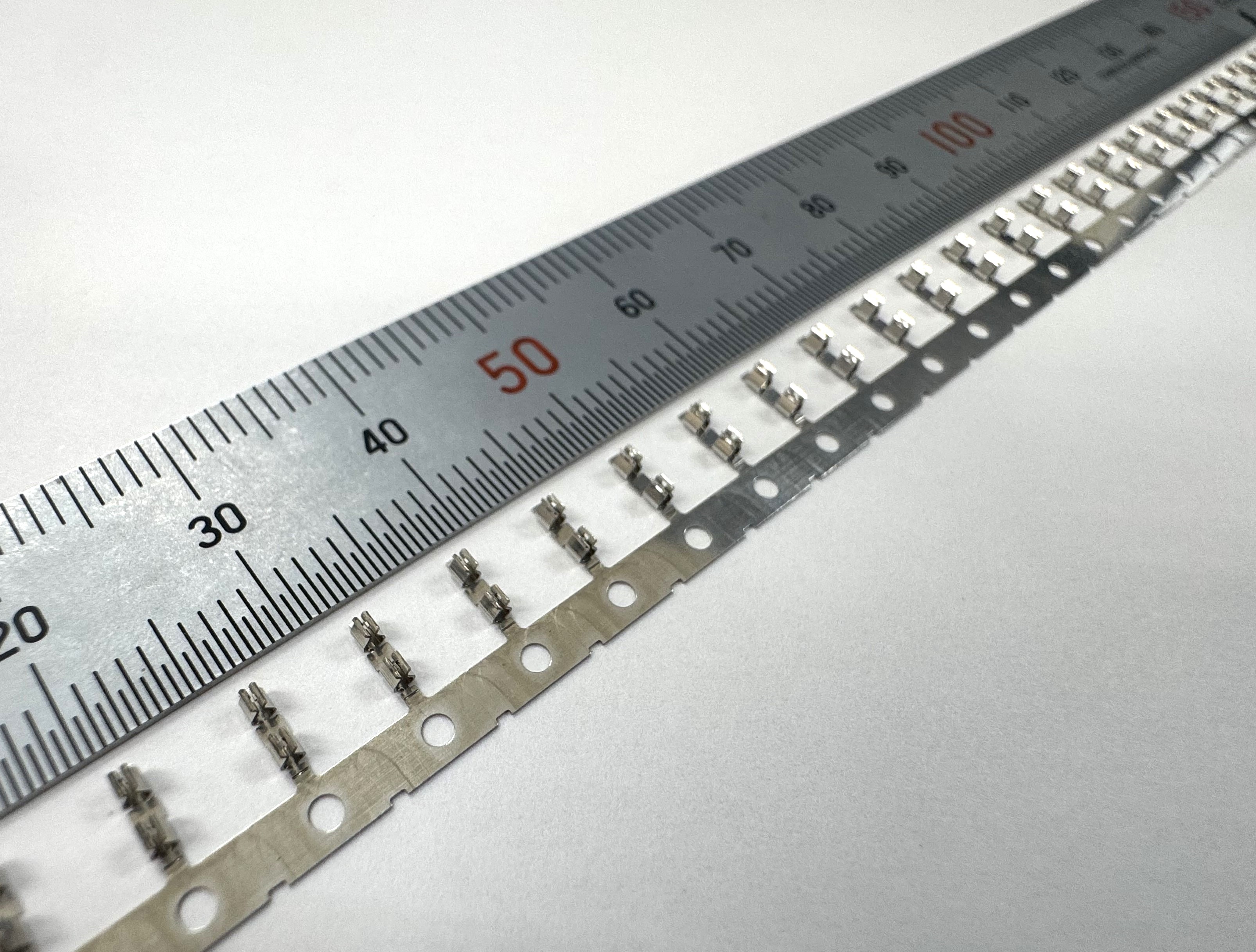 こちらは、民生品用途のSUS301-EH製のクリップ試作品です。板厚0.15mm、ピッチ5.8mmで、試作金型にて製造いたしました。